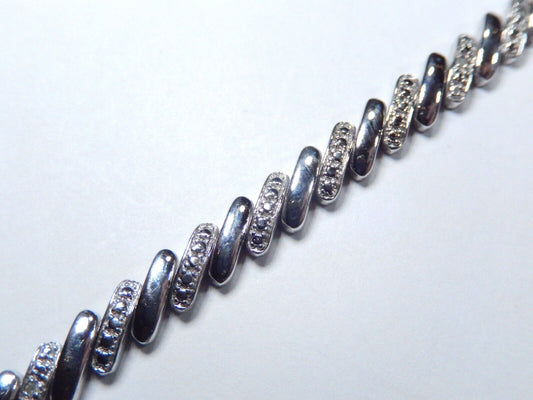 *VINTAGE* Sterling Silver SPARKLING Cubic Zirconia CZ Slant Bar Link Bracelet 7"