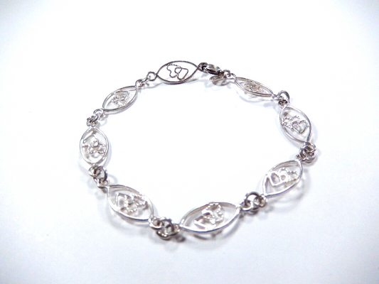 Sterling Silver 925 Mother Daughter Friends Forever Heart Link 7.25" Bracelet