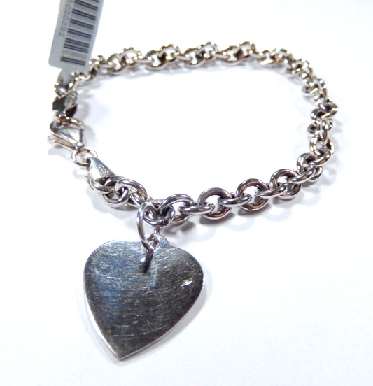 Sterling Silver 5.50 mm Rolo Link Chain Bracelet w/ Heart Tag Charm 7"