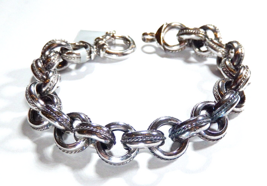 *VINTAGE* Italy Sterling Silver 925 Oval Big Rolo Chain Link Bracelet 17 g 7.5"
