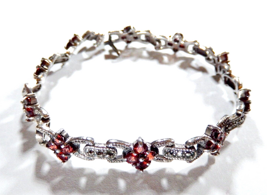 *VINTAGE* Art Deco Garnet & Marcasite Sterling Silver Bracelet 7.5"