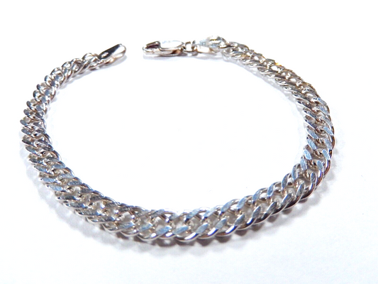 *VINTAGE* Sterling Silver Polished 6 mm Flat Byzantine Chain 7 in Bracelet