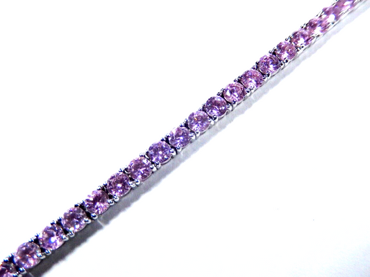 10.0 CT Pink CZ Tennis Bracelet 4.25mm Wide Real Iced 925 Sterling Silver 7"