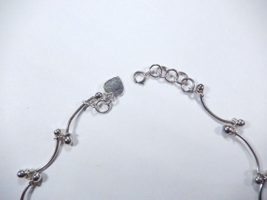 Sterling Silver Ball Bead Fancy Link with Heart Charm Anklet 10"