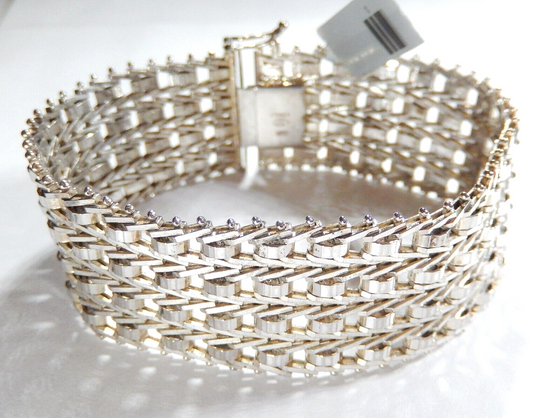 MILOR ITALY 1" WIDE BASKETWEAVE MESH BRACELET 925 Sterling Silver 40 gram 7.5"