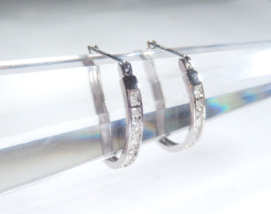 *VINTAGE* 10K White Gold 1/5cttw Natural Diamond 21mm Hoop Earrings