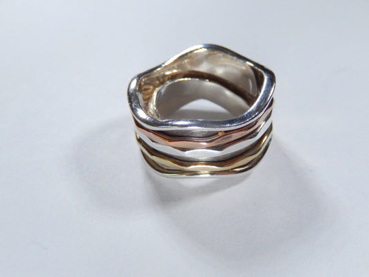 Sterling Silver Spinner Ring w/ Brass Copper & Sterling Silver Bands Sz 7.5