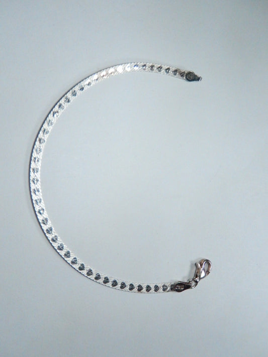 Sterling Silver Heart Herringbone Reversible Bracelet 925 - 7" Length - 2.9 gram