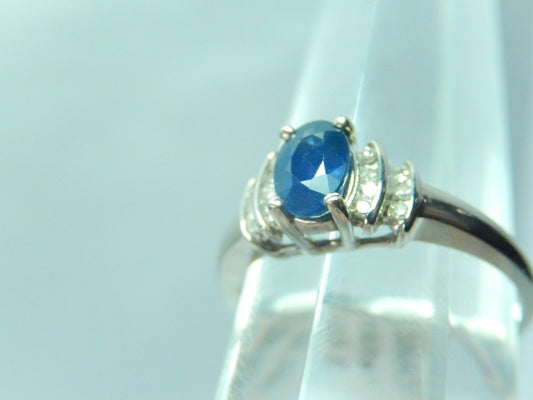 10K White Gold 1/2 ct Natural Blue Sapphire & 1/6 ct Diamond Ring Sz 7.25