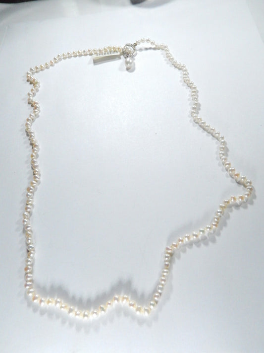 *VINTAGE* 14k White Gold 4.25 mm 24" Pearl Necklace with Slide Diamond Clasp
