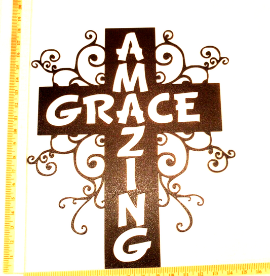 *NEW* 14ga. Amazing Grace Cross 18" x 13.5" Metal Wall Art Copper Powder Coated