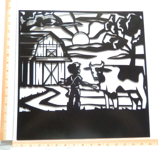 ~NEW~ LARGE 14ga. " BOY LOVES LIVING ON THE FARM" Metal Wall Art - 16" x 16"