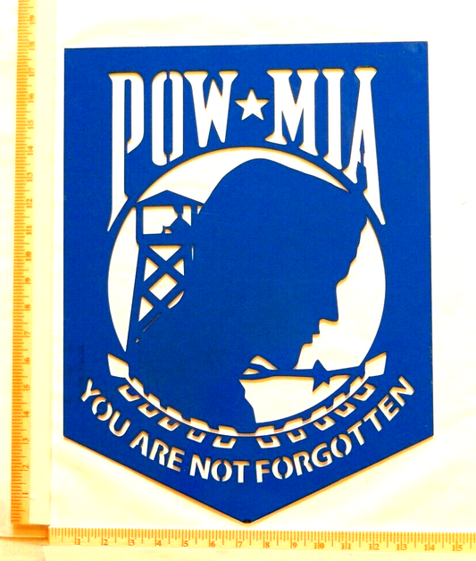 ~NEW~ LARGE 14ga. -"POW MIA You Are Not Forgotten" Blue Metal Wall Art 18" x 14"