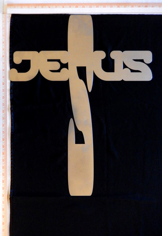 ~NEW~ LARGE 14ga.- "JESUS CROSS" Silver Metal Wall Art - 26" x 21"