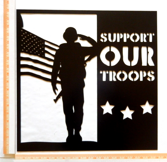 ~NEW~ LARGE - 14ga. "SOLDIER SALUTING AMERICAN FLAG" Metal Wall Art 18" x 18"