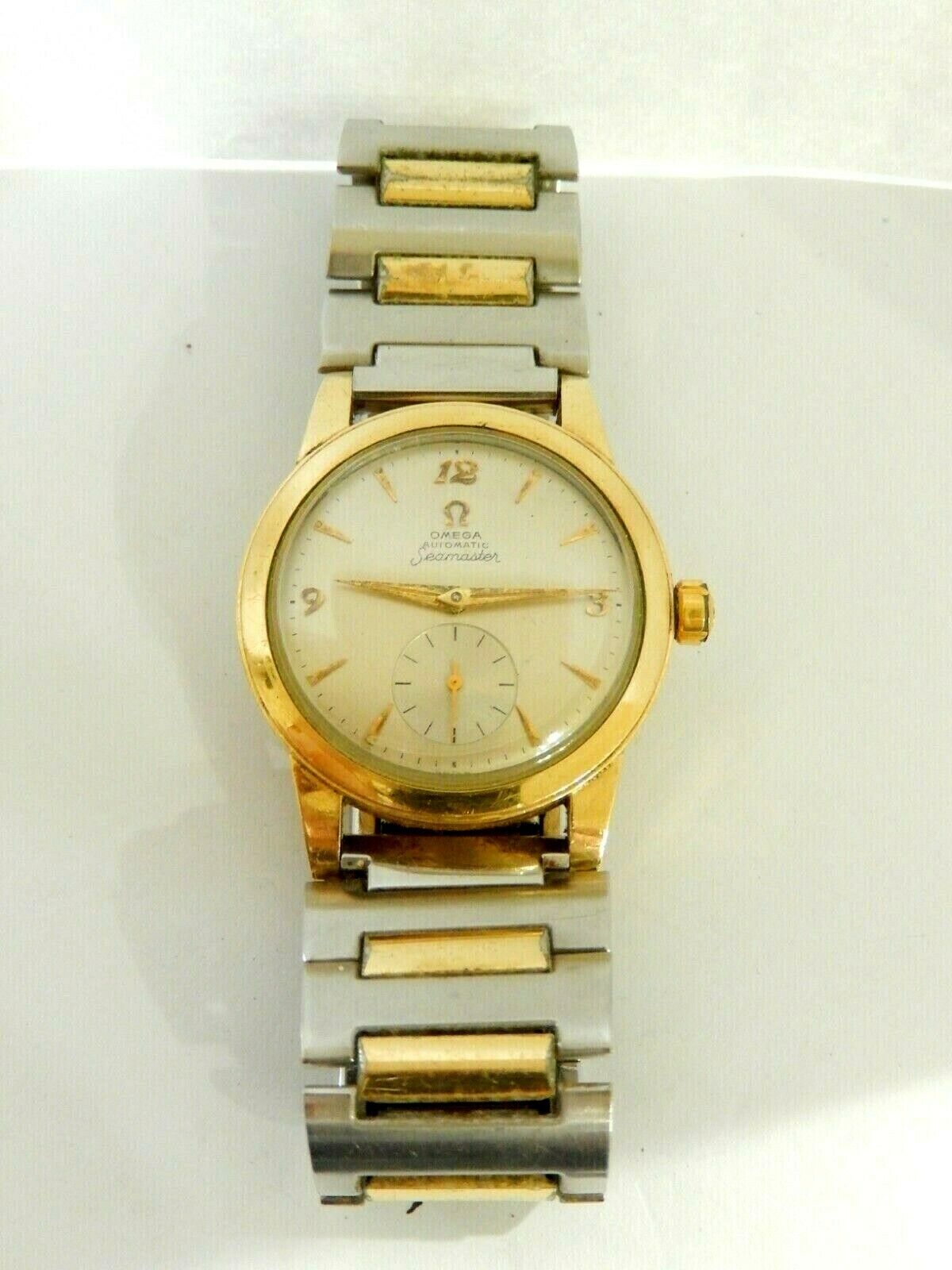 THIS IS A CLEAN ORIGINAL 1956 OMEGA SEAMASTER AUTOMATIC WATCH. IT HAS A 14K GOLD FILLED CASE MODEL F6249.