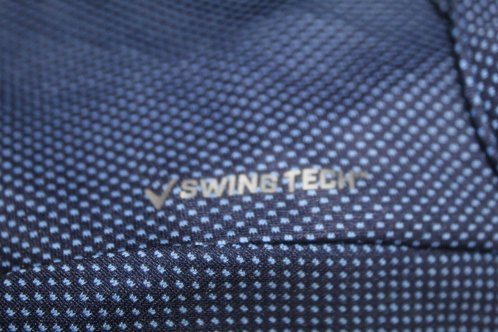 NEW WITH TAG MEN'S CALLAWAY OPTI - DRI SWING TECH GOLF POLO SHIRT SIZE MED.......BLUE AND BLACK POKA DOT .............FAST SHIPPING.