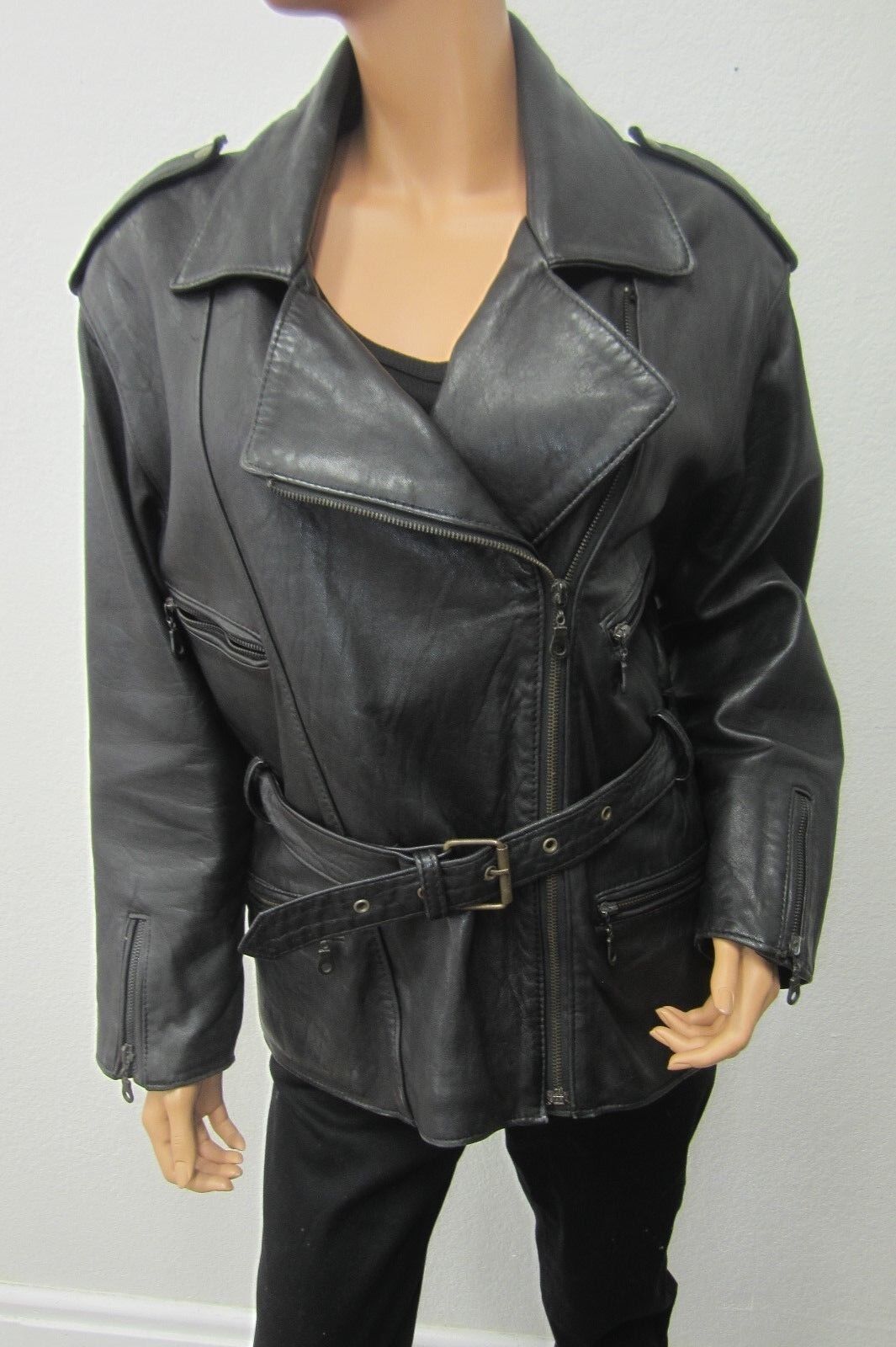 *VINTAGE* Mint JF Collection Biker Heavy Black LeatherJacket Zip Sleeves M